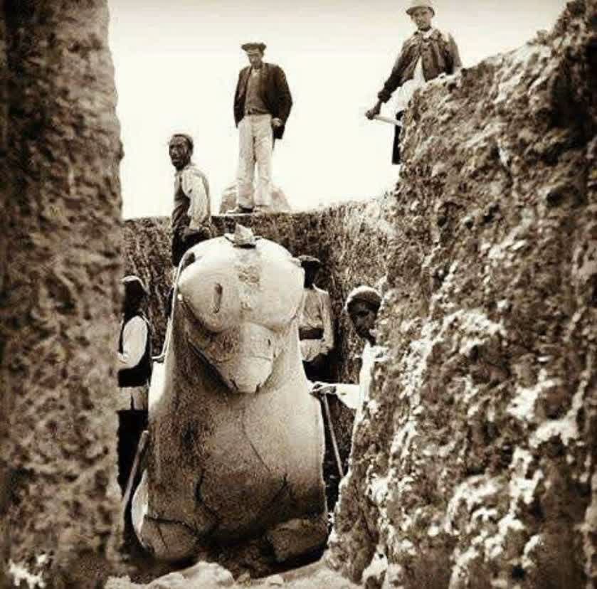 به گزارش مرودشت نما، تصویری کمتر دیده شده از وقتی در سال ۱۳۱۰ شیردال [موجودی افسانهای با تن شیر و سر دال و گوش اسب] را از دل خاک بیرون میآورند.